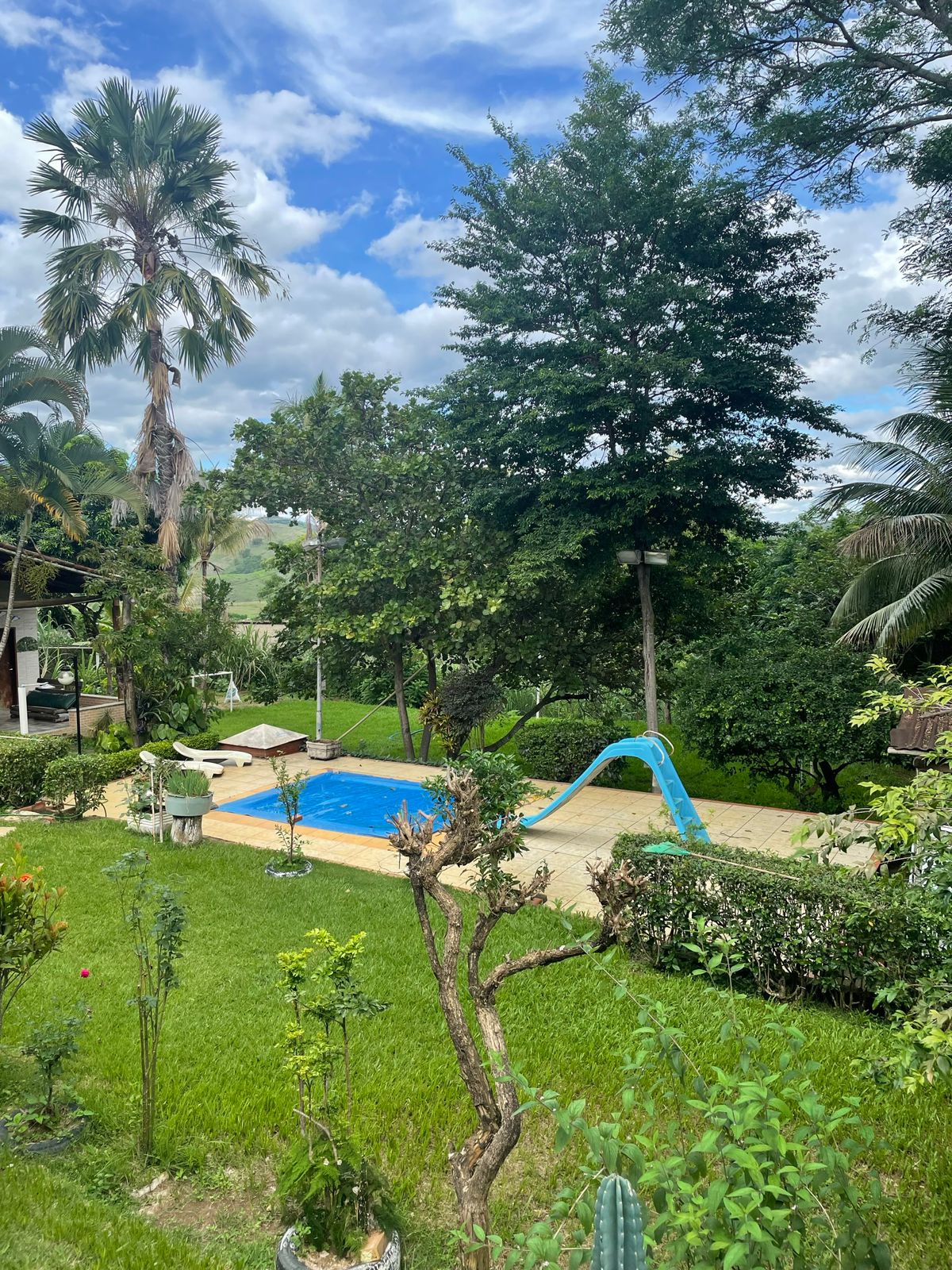 – Piscina, escorregador para crianças, espreguiçadeira e ducha.
